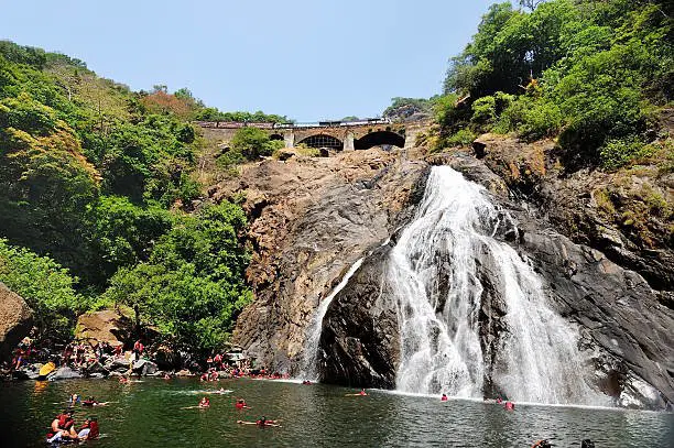 Witness the majestic four-tier waterfall cascading through lush green forests of Goa.